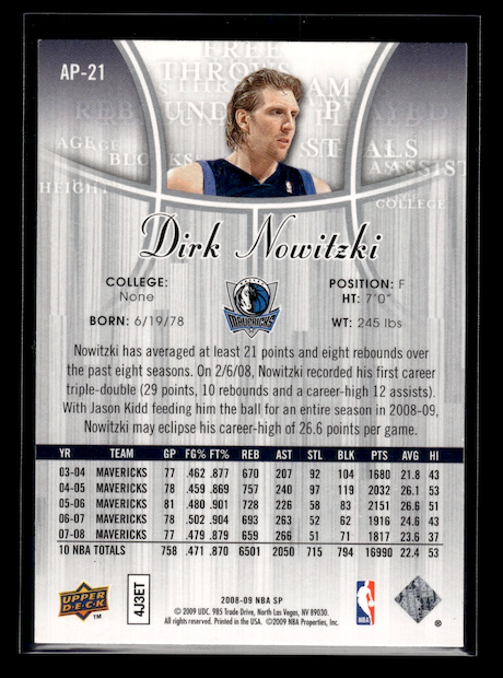 2008-09 SP Authentic Profiles #AP21 Dirk Nowitzki (Dallas Mavericks)