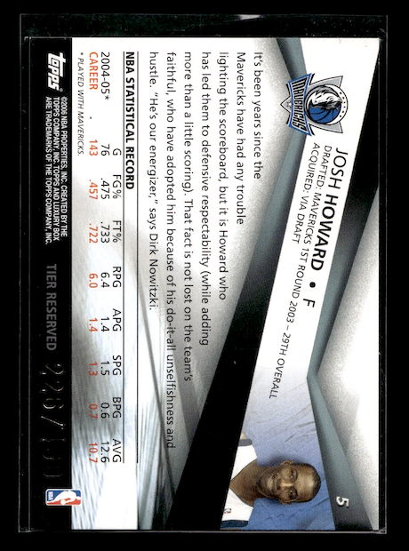 2005-06 Topps Luxury Box 430 #5 Josh Howard #'d 226/430 (Dallas Mavericks)