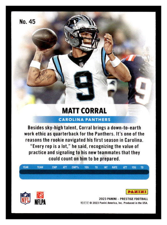 2023 Panini Prestige #45 Matt Corral (Carolina Panthers)