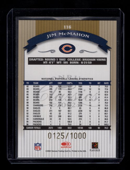 2002 Donruss Classics #116 Jim McMahon #'d /1000 (Chicago Bears)