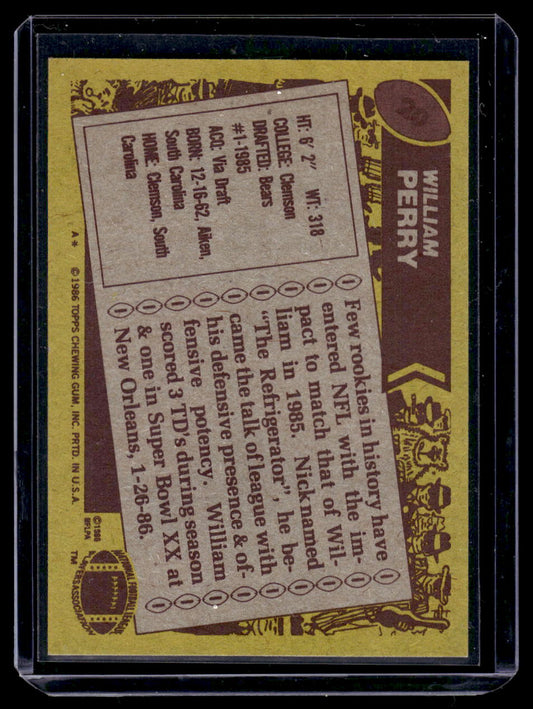 1986 Topps #20 William Perry Rookie Card (Chicago Bears)