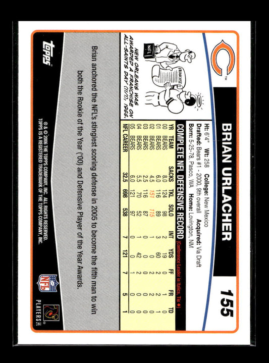 2006 Topps #155 Brian Urlacher (Chicago Bears)