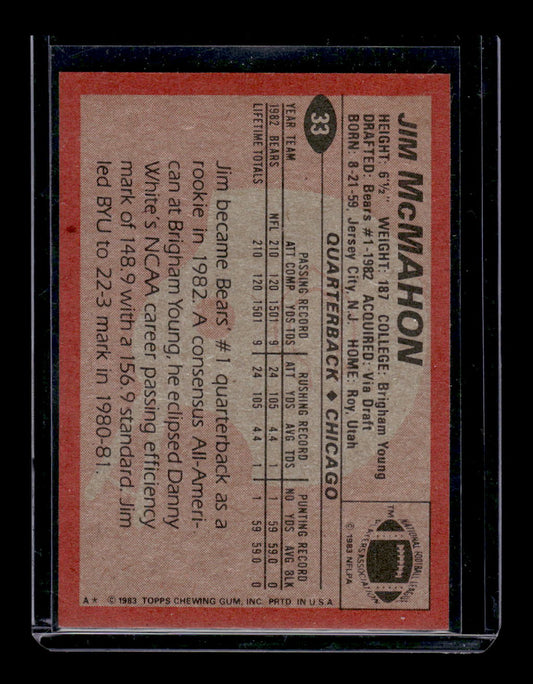 1983 Topps Rookie Card #33 Jim McMahon (Chicago Bears)
