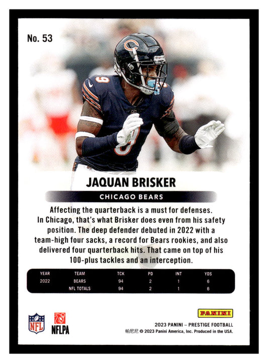 2023 Panini Prestige #53 Jaquan Brisker (Chicago Bears)