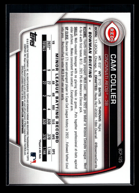 2023 Bowman Chrome Mega Box Prospects #BCP125 Cam Collier (Cincinnati Reds)