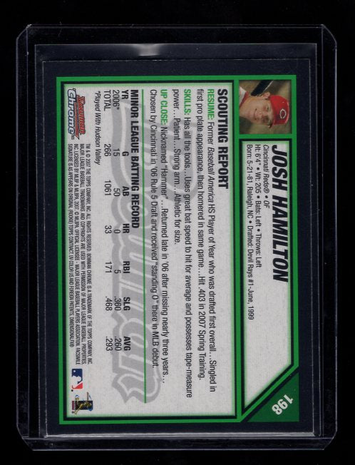 2007 Bowman Chrome #198 Josh Hamilton Rookie (Cincinnati Reds)