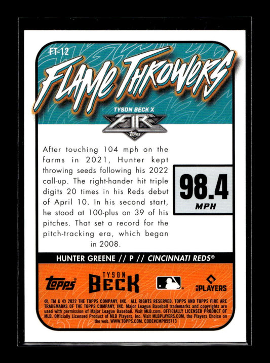 2022 Topps Fire Flame Throwers Gold Minted #FT12 Hunter Greene (Cincinnati Reds)