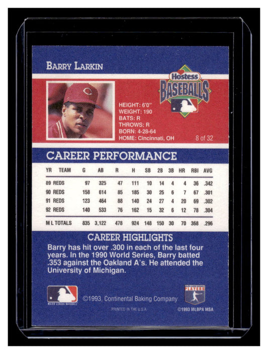 1993 Hostess Baseball Card #8 Barry Larkins (Cincinnati Reds)