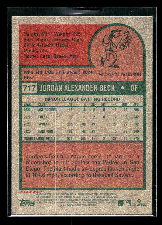 2024 Topps Heritage #717 Jordan Beck SP Rookie (Colorado Rockies)