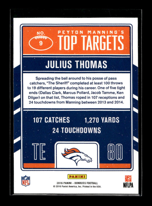 2016 Donruss Optic Peyton Manning Top Targets #9 Julius Thomas/Peyton Manning (Denver Broncos)