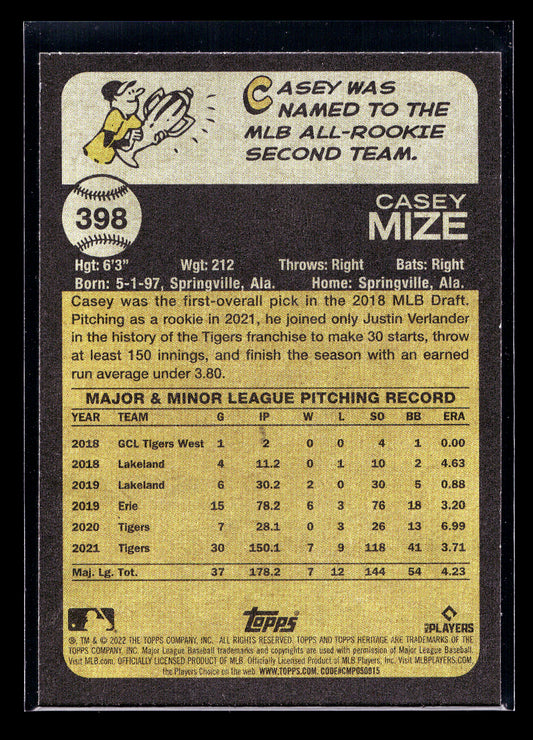 2022 Topps Heritage #398 Casey Mize (Detroit Tigers)