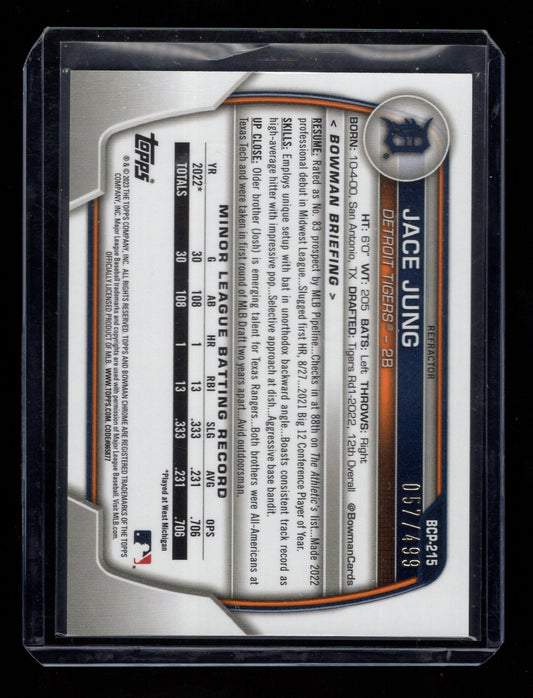 2023 Bowman Chrome Draft Refractors #BCP-215 Jace Jung Rookie #'d /499 (Detroit Tigers)