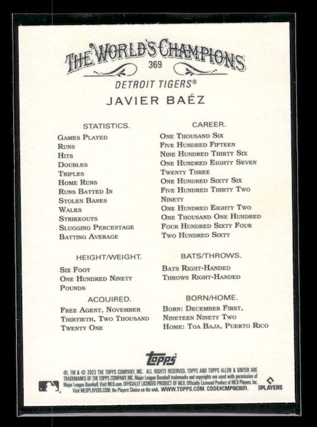 2023 Topps Allen and Ginter #369 Javier Baez SP (Detroit Tigers)