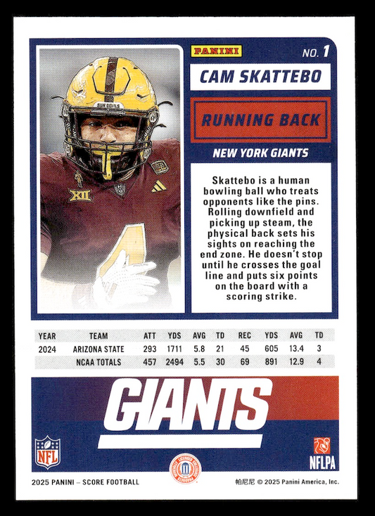2025 Score Rookies #1 Cam Skattebo (New York Giants)