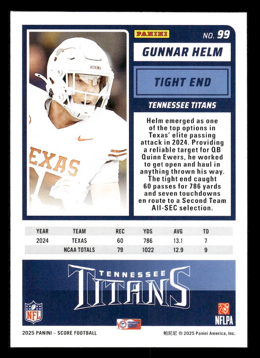 2025 Score Rookies #99 Gunnar Helm (Tennessee Titans)