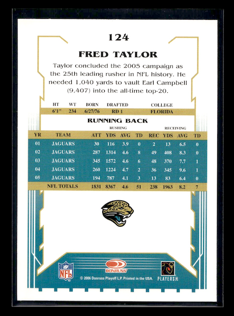 2006 Score #124 Fred Taylor (Jacksonville Jaguars)