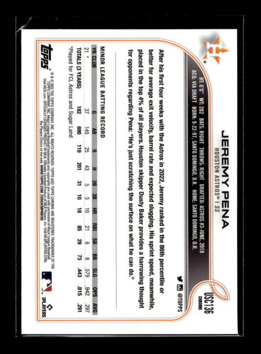 2022 Topps Chrome Update Purple Refractors #USC136 Jeremy Pena (Houston Astros)