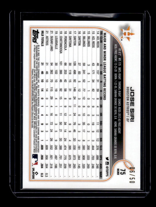 2022 Topps Gilded Collection Topps Chrome Gold Etch Mini-Diamond Refractors #75 Jose Siri #'d 06/50 (Houston Astros)