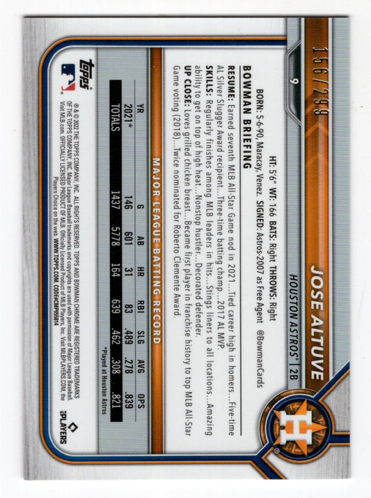 2022 Bowman Chrome Jose Altuve #9 Pink Fuchsia #'d /299 (Astros)