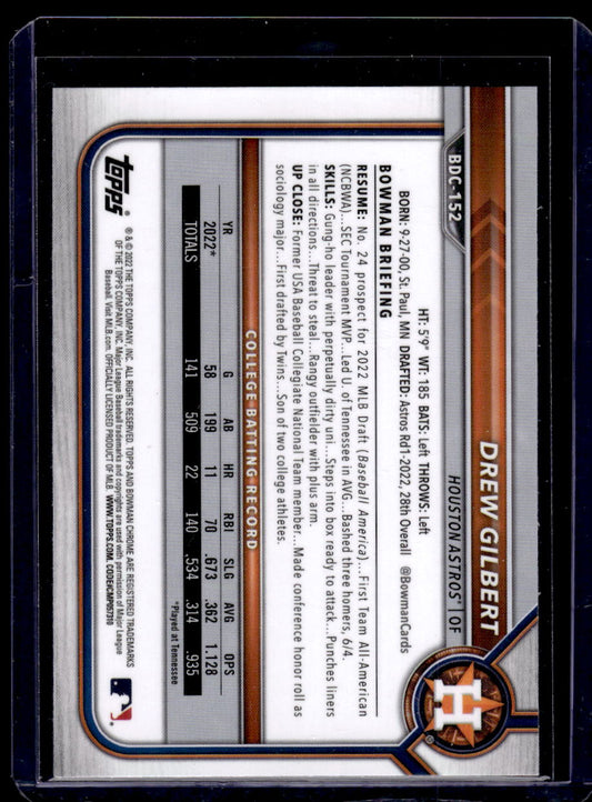 2022 Bowman Draft Chrome #BDC-152 Drew Gilbert (Houston Astros)
