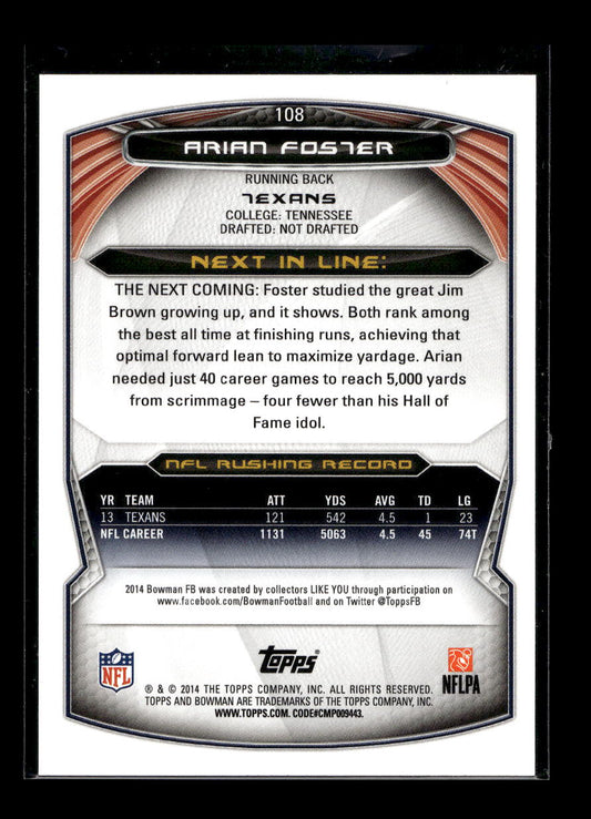 2014 Bowman #108 Arian Foster (Houston Texans)