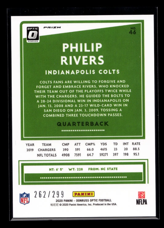2020 Donruss Optic Aqua #46 Philip Rivers #'d /299 (Indianapolis Colts)