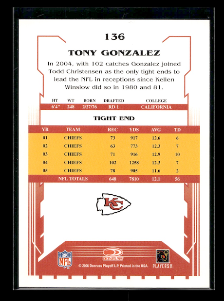 2006 Score #136 Tony Gonzalez (Kansas City Chiefs)