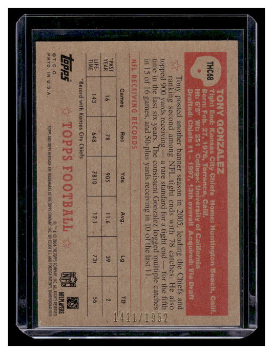 2006 Topps Heritage Chrome #THC68 Tony Gonzalez #'d 1411/1952 (Kansas City Chiefs)