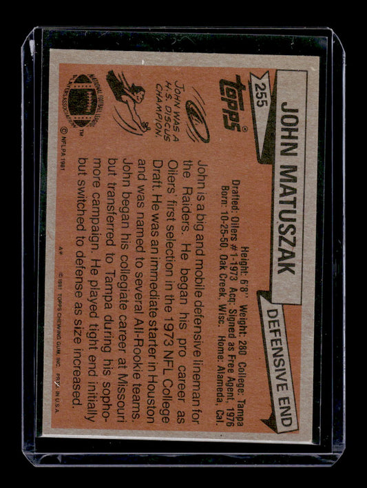 1981 Topps #255 John Matuszak (Oakland Raiders)