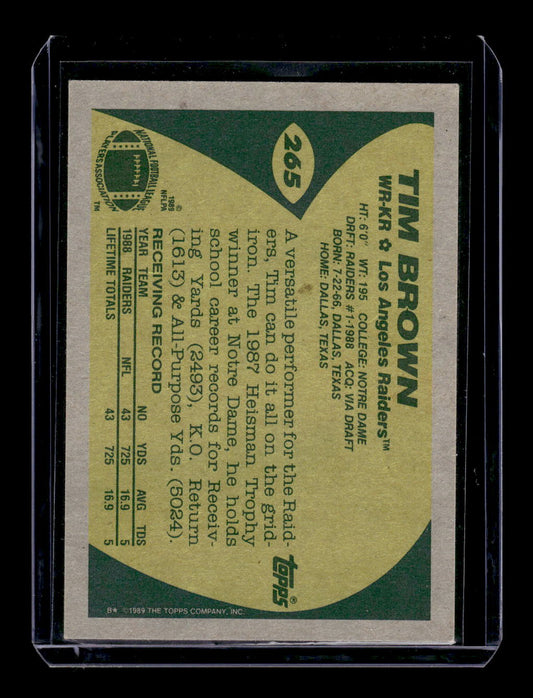 1989 Topps Rookie #265 Tim Brown (Los Angeles Raiders)