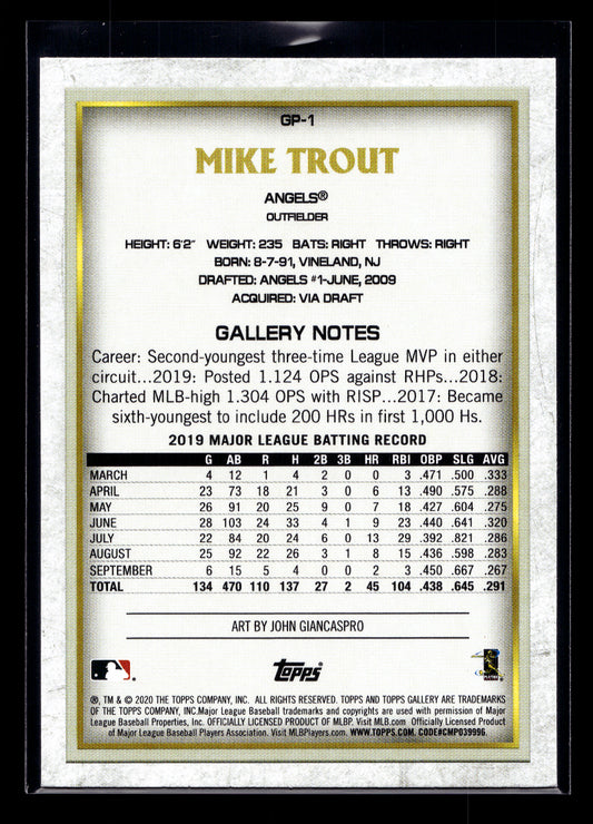 2020 Topps Gallery Preview #GP1 Mike Trout (Los Angeles Angels)