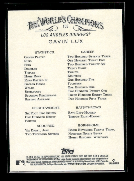 2023 Topps Allen and Ginter #153 Gavin Lux (Los Angeles Dodgers