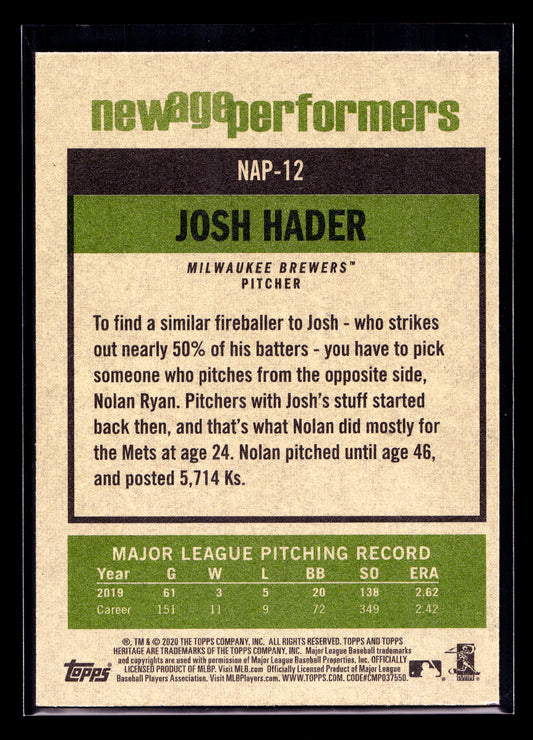 2020 Topps Heritage New Age Performers #NAP12 Josh Hader (Milwaukee Brewers)