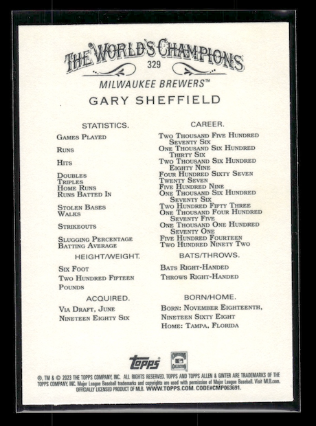 2023 Topps Allen and Ginter #329 Gary Sheffield SP (Milwaukee Brewers)