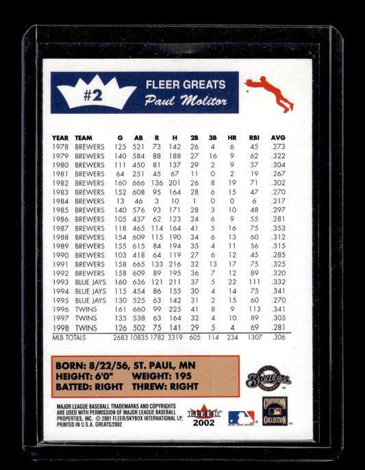 2002 Greats of the Game #2 Paul Molitor (Milwaukee Brewers)