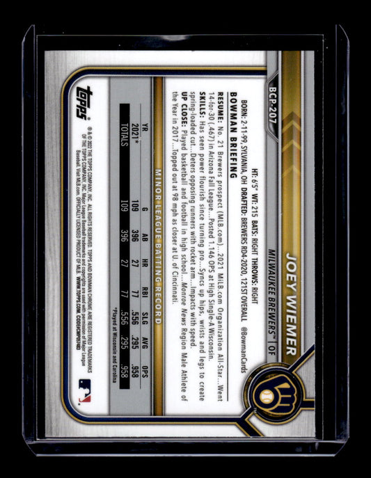 2022 Topps Bowman Chrome #BCP-207 "Sapphire - Cracked Ice" Joey Wiemer (Milwaukee Brewers)