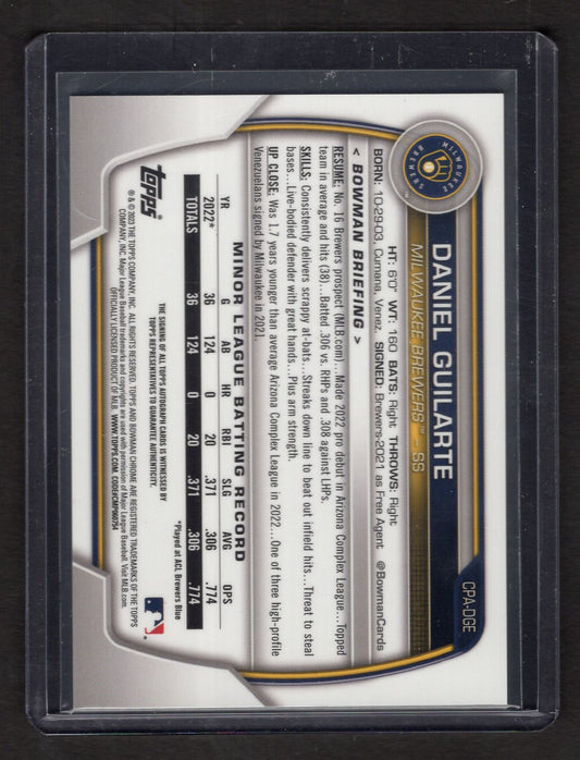2023 Bowman Chrome Daniel Guilarte #CPA-DGE 1st Autograph #'d /99 (Milwaukee Brewers)