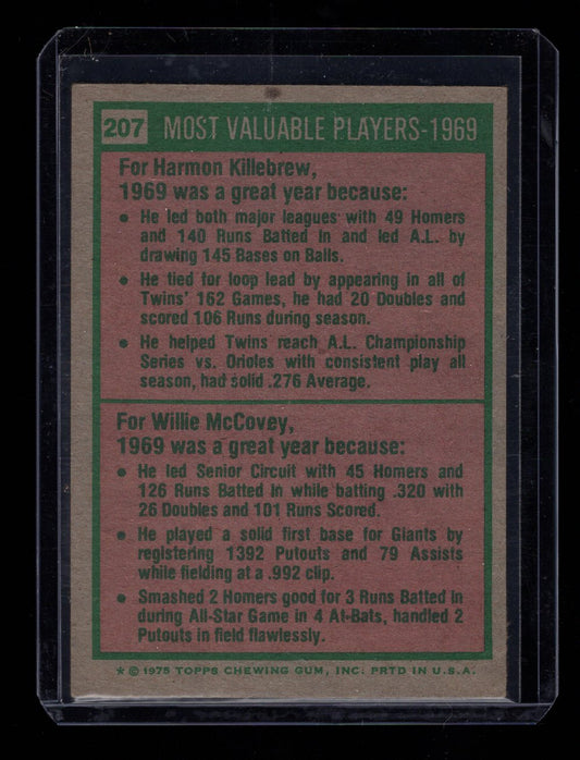 1975 Topps #207 Harmon Killebrew / Willie McCovey MVP