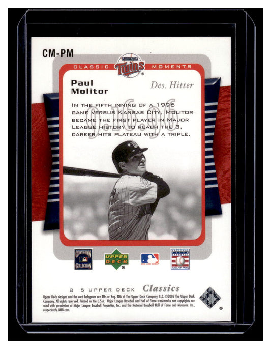 2005 Upper Deck Classics #CM-PM "Classic Moments" Paul Molitor #'d 0038/1999 (Minnesota Twins)