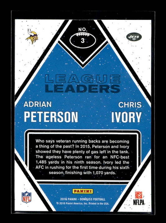 2016 Donruss League Leaders #3 Adrian Peterson/Chris Ivory (Minnesota Vikings)