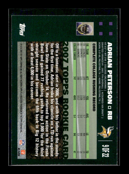 2007 Topps Turn Back The Clock #9 Adrian Peterson (Minnesota Vikings)