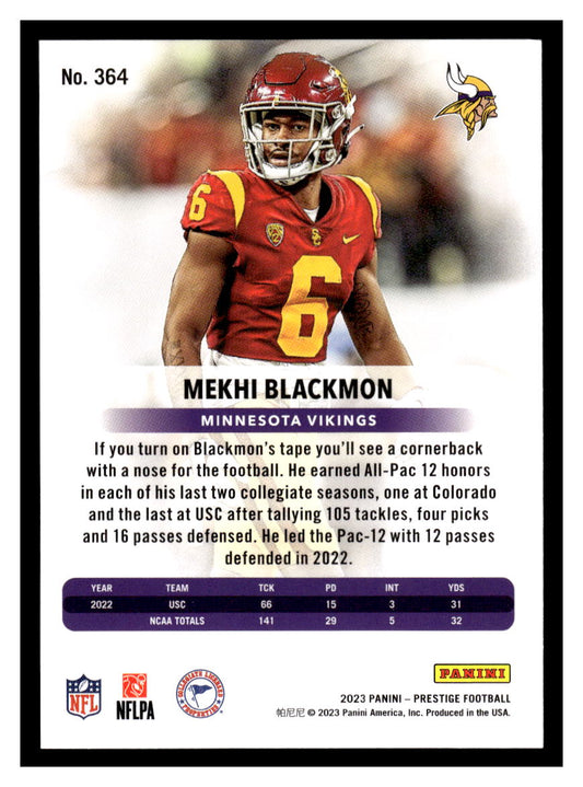 2023 Panini Prestige #364 Mekhi Blackmon Rookie RC (Minnesota Vikings)
