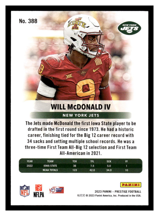 2023 Panini Prestige #388 Will McDonald IV Rookie RC (New York Jets)