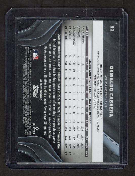 2023 Topps Chrome Black Oswaldo Cabrera Rookie Card #31 (New York Yankees)