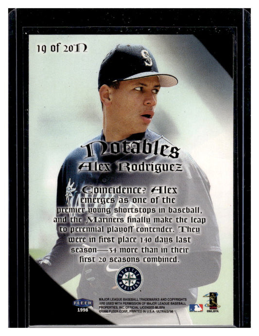 1998 Ultra "Notables" #19N Alex Rodriguez (Seattle Mariners)