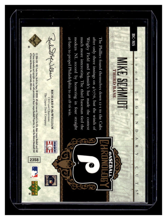 2006 Upper Deck SP "Legendary Cuts Chronology #BC-MS Mike Schmidt #'d /99 (Philadelphia Phillies)