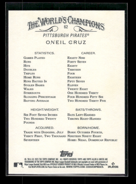 2023 Topps Allen and Ginter #62 Oneil Cruz (Pirates)