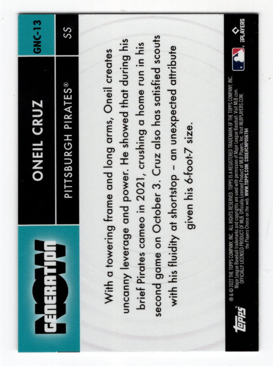 2022 Topps Chrome Update Oneil Cruz Generation Now #GNC13 (Pirates)