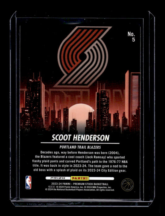 2023-24 Hoops Premium Stock City Edition Silver Prizm (RC) #5 Scoot Henderson (Portland Trail Blazers)