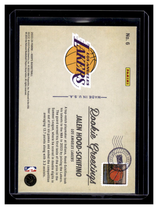 2023-24 NBA Hoops "Rookie Greetings" # Jalen Hood-Schifino Rookie RC (Lakers)